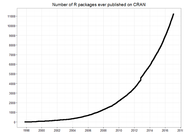 As of September 29, there are 13,083 packages on CRAN, 1,560 on Bioconductor, and many others on github)