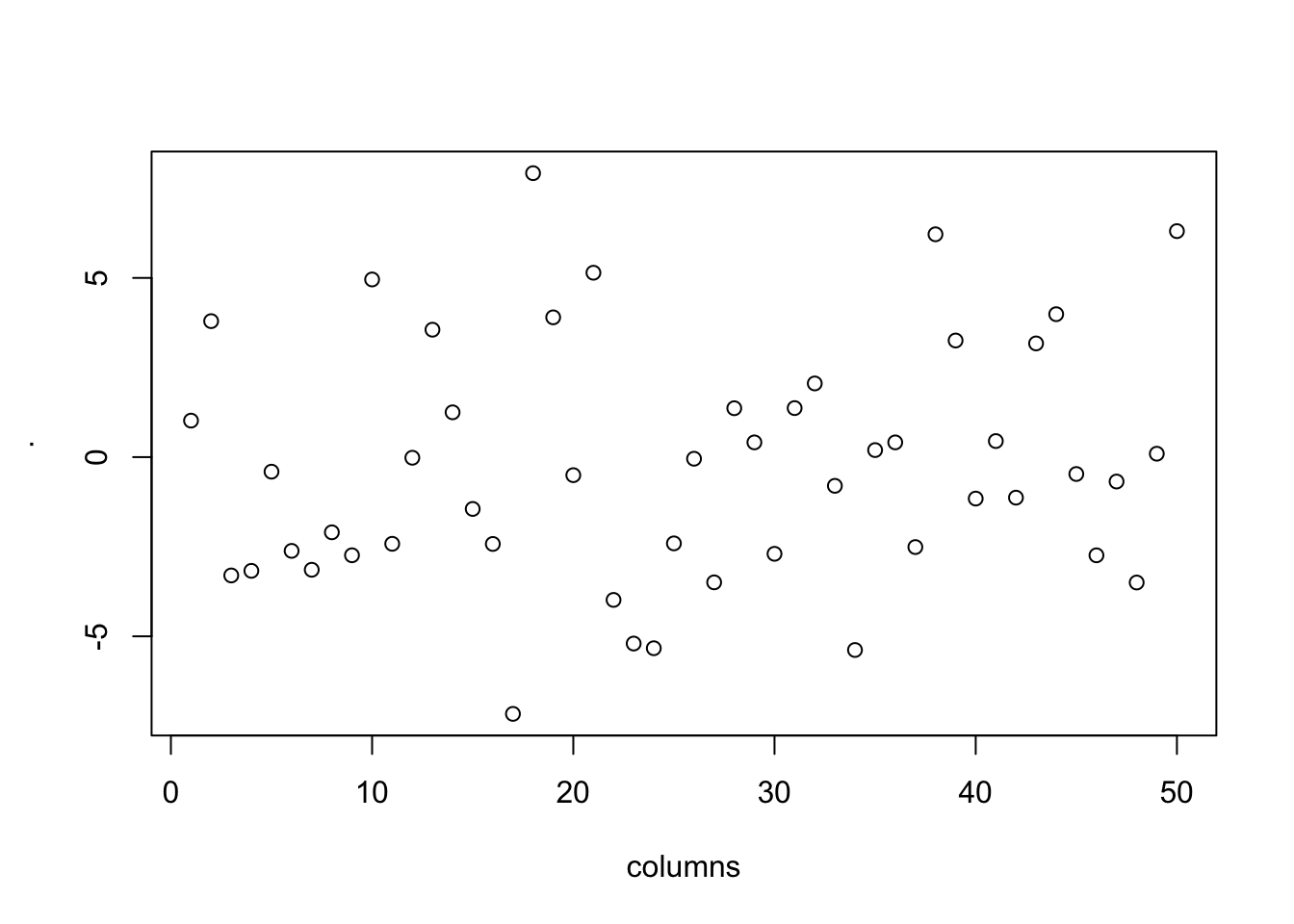 , used to send the output of one program to another program for further processing.columns <- 1:50